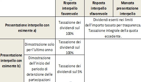 Quindi possiamo riassumere con la seguente tabella la tassazione dei dividendi black-list: