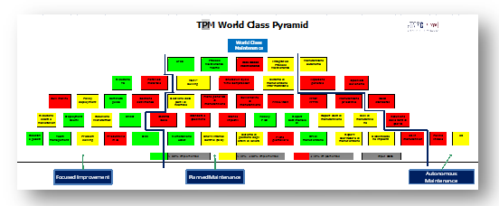 Il modello dell’Assessement permette di evidenziare, attraverso l’analisi di 73attività, le aree di criticità, le aree di debolezza ed i punti di forza secondo i pilastri del Miglioramento Continuo, della Manutenzione Autonoma, della Manutenzione Programmata e sia di quello della Gestione Anticipata degli Impianti.