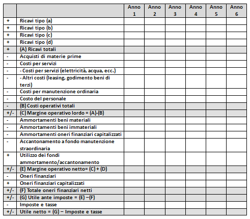 Per questo motivo il piano economico - finanziario nel dimostrare la sussistenza dell'equilibrio economico e finanziario dell’investimento, deve rendere evidente: