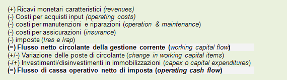 Analiticamente esso risulta determinato come somma algebrica dei flussi di cassa operativi attesi dalla realizzazione dell’intervento, scontati al tasso corrispondente al costo stimato del capitale investito.