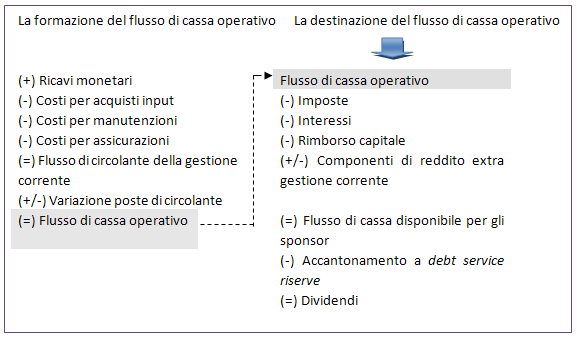 Durante la fase operativa, invece, iniziano a prodursi i ricavi; i flussi di cassa diventano perciò progressivamente positivi e possono essere destinati al rimborso del debito contratto in conto capitale e in conto interessi.