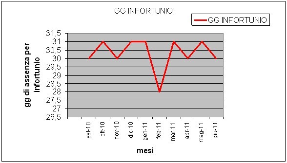 Ma nutrono molto interesse anche i dati numerici assoluti come il numero d’infortuni nel tempo e la loro relativa gravità. Si tratta di destagionalizzare i dati, portando i giorni di assenza per mancato infortunio, all’epoca dell’accadimento, in modo da verificare la genesi temporale dell’evento.