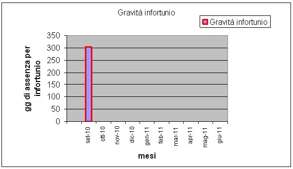 Se vogliamo riportare graficamente la gravità di questo infortunio nel 2010 per poterlo poi confrontare con gli altri accaduti nei periodi precedenti o successivi, avremo nel mese di settembre 2010 un infortunio con 303 giorni di assenza. Si veda la Tav.2.