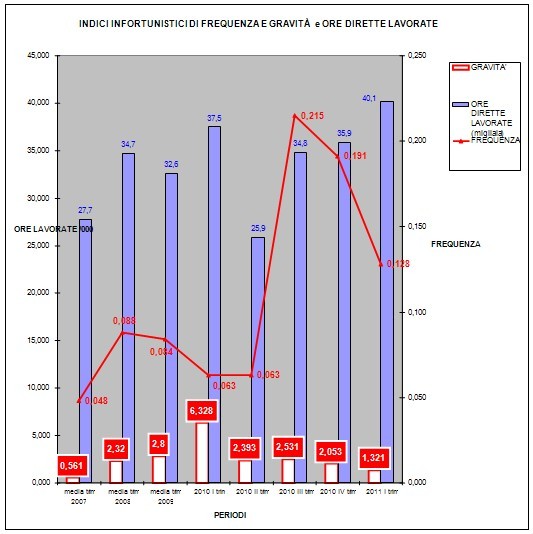 Nell’analisi degli infortuni è poi utile far comprendere il rapporto che esiste tra quantità di lavoro svolta (n. di ore dirette) e gli indici di frequenza e gravità dei nostri infortuni.