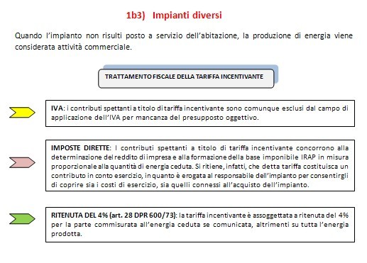 4. Disciplina fiscale della tariffa incentivante e dei ricavi derivanti dalla vendita dell’energia