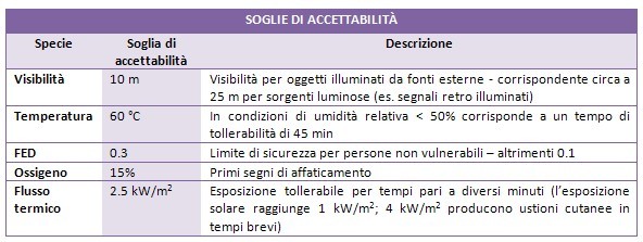 Tali criteri permettono agli occupanti la fuga in aria indisturbata, non inquinata dai prodotti della combustione, e un valore dell'irraggiamento dai fumi, cui sono esposti, inferiore a 2,5 kW/m2. Tale metodologia, sicuramente più conservativa, richiede anche minore precisione in fase di modellazione.