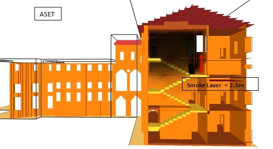 Per concludere, il calcolo degli scenari di incendio di progetto, usando modelli di simulazione, ha il principale compito di calcolare il movimento degli effluenti dell’incendio , la concentrazione dei gas tossici, del fumo e la loro temperatura. Questi parametri, comparati con le soglie di accettabilità, permettono di definire il tempo di ASET per quello specifico tipo di scenario di incendio.