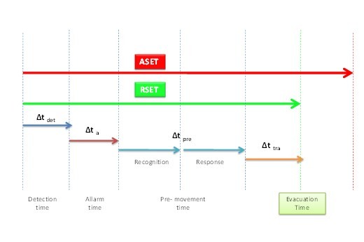 Il tempo richiesto per fuggire in sicurezza dipende da più intervalli, fortemente influenzati dal comportamento e dalle caratteristiche fisiche e sensoriali degli occupanti. Tali intervalli possono essere schematizzati in: