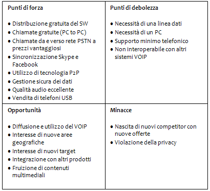 Dall’analisi SWOT dell’azienda è emerso: