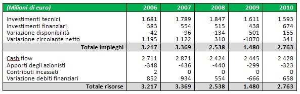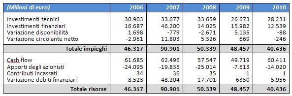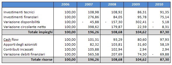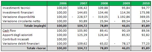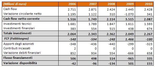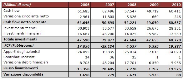 Negli anni successivi le aziende del campione vedono calare gli investimenti e il FCF diventa positivo. Tuttavia la dimensione del flusso in valore assoluto rimane molto contenuta e l’effetto finale è un peggioramento della posizione finanziaria netta. Il 2009 presenta ancora una riduzione degli investimenti netti, da cui un FCF positivo, che in parte può essere destinato al miglioramento della posizione finanziaria. Nel 2010 il FCF si mantiene positivo, per una caduta ulteriore degli investimenti e viene destinato alla riduzione dei debiti finanziari.