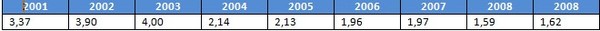 Il margine operativo (Ebit) diventa negativo a partire dal 2005, mentre la società deve rilevare un crescente onere per interessi passivi, per cui il risultato ante imposte assume valori estremamente contenuti già dal 2003. Il reddito netto diventa pertanto negativo, in quanto il margine ante imposte non è in grado di coprire l’onere per l’imposta sui redditi e per l’Irap.